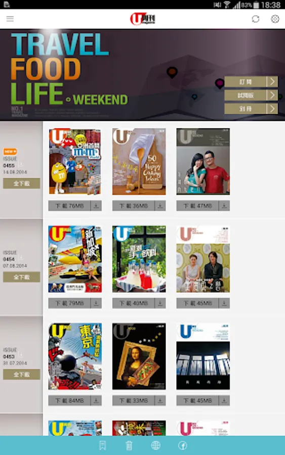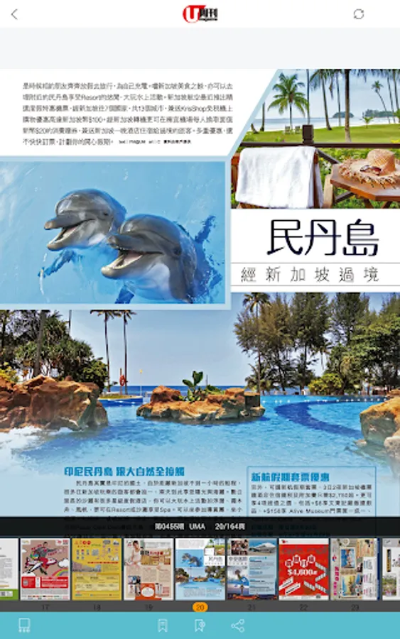 《U Magazine (U周刊) 電子雜誌》,為用戶提供一本優質優越的旅遊生活周刊。雜誌一書三冊,分為︰「Travel」、「Food」、「Life + Weekend」,帶引讀者 see U see more「睇」驗。