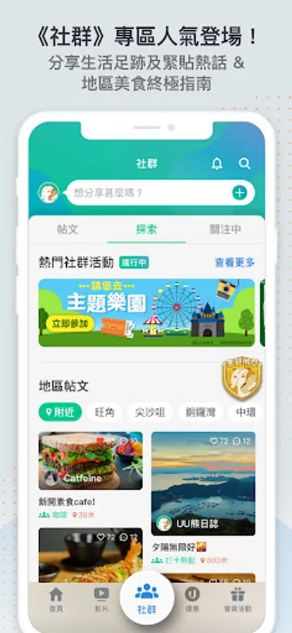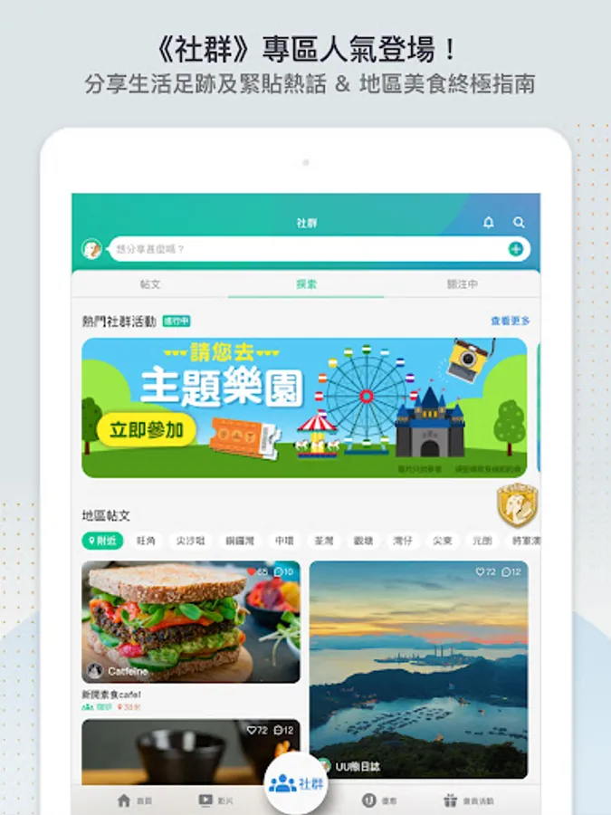 "Community" - selects popular food themes, gathers food lovers to share content, pays close attention to coffee, check-in restaurants, desserts, specialty teas, recipes, local and multinational cuisine, etc., providing a platform for intimate communication and recording life.