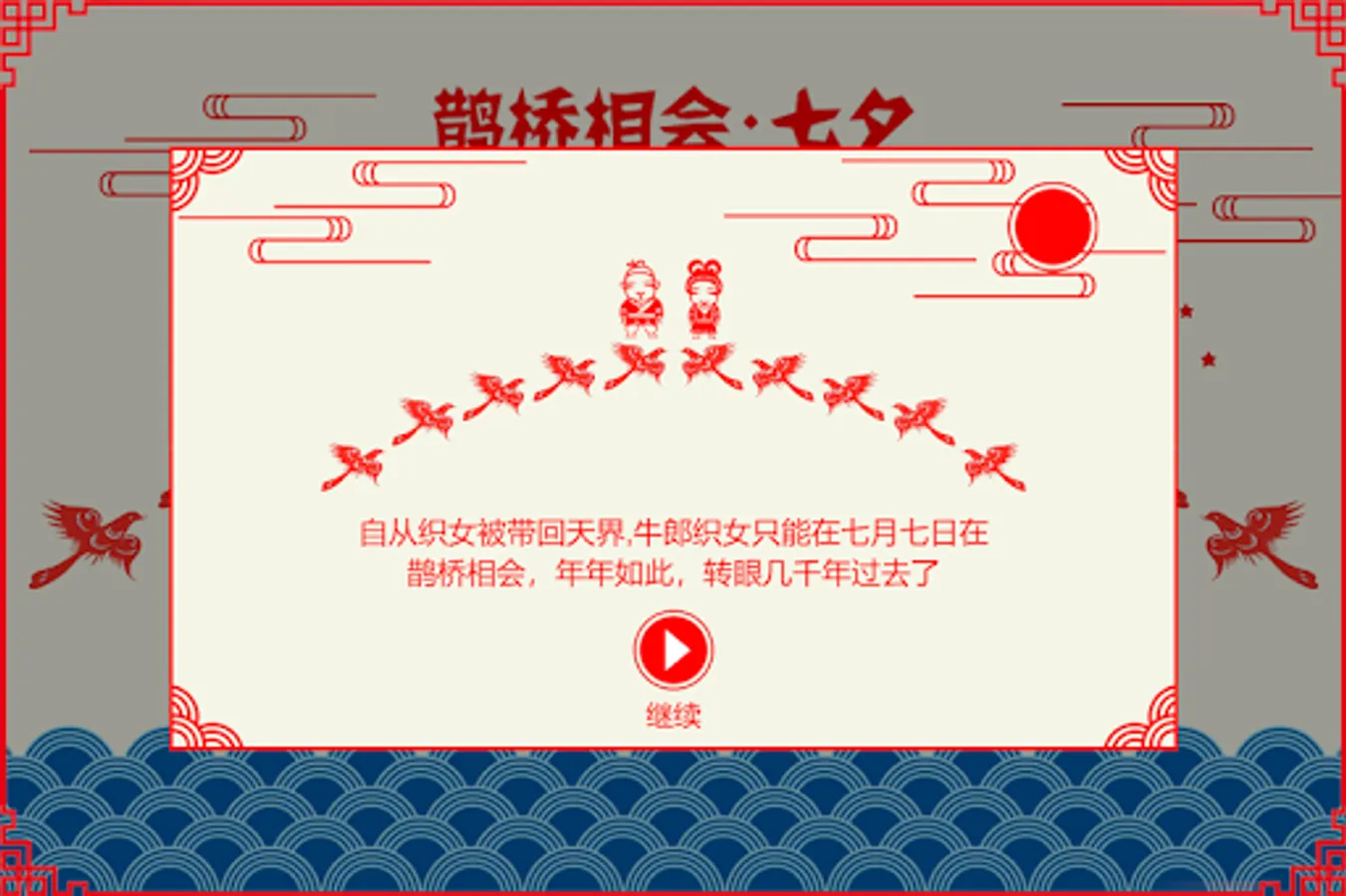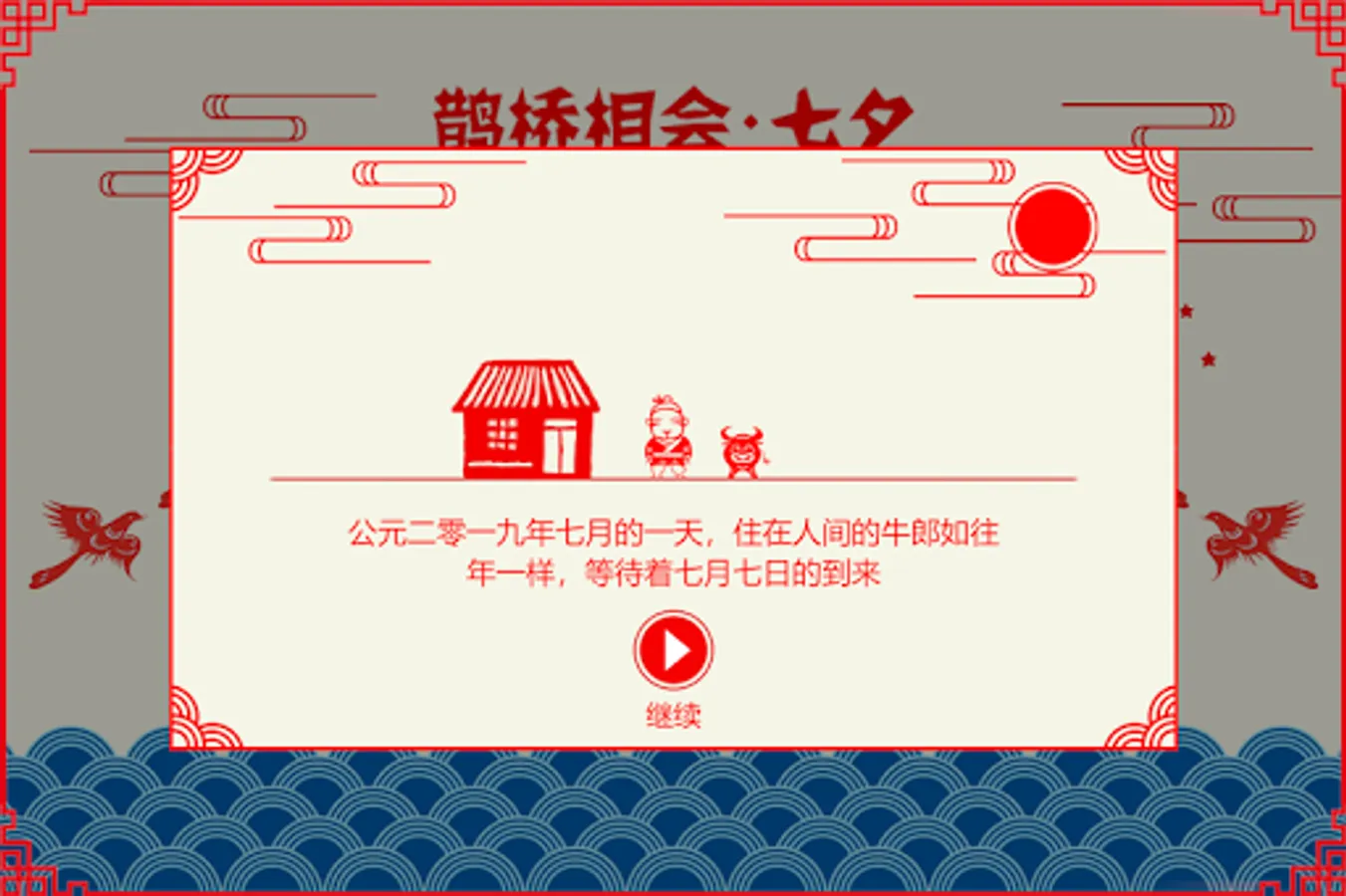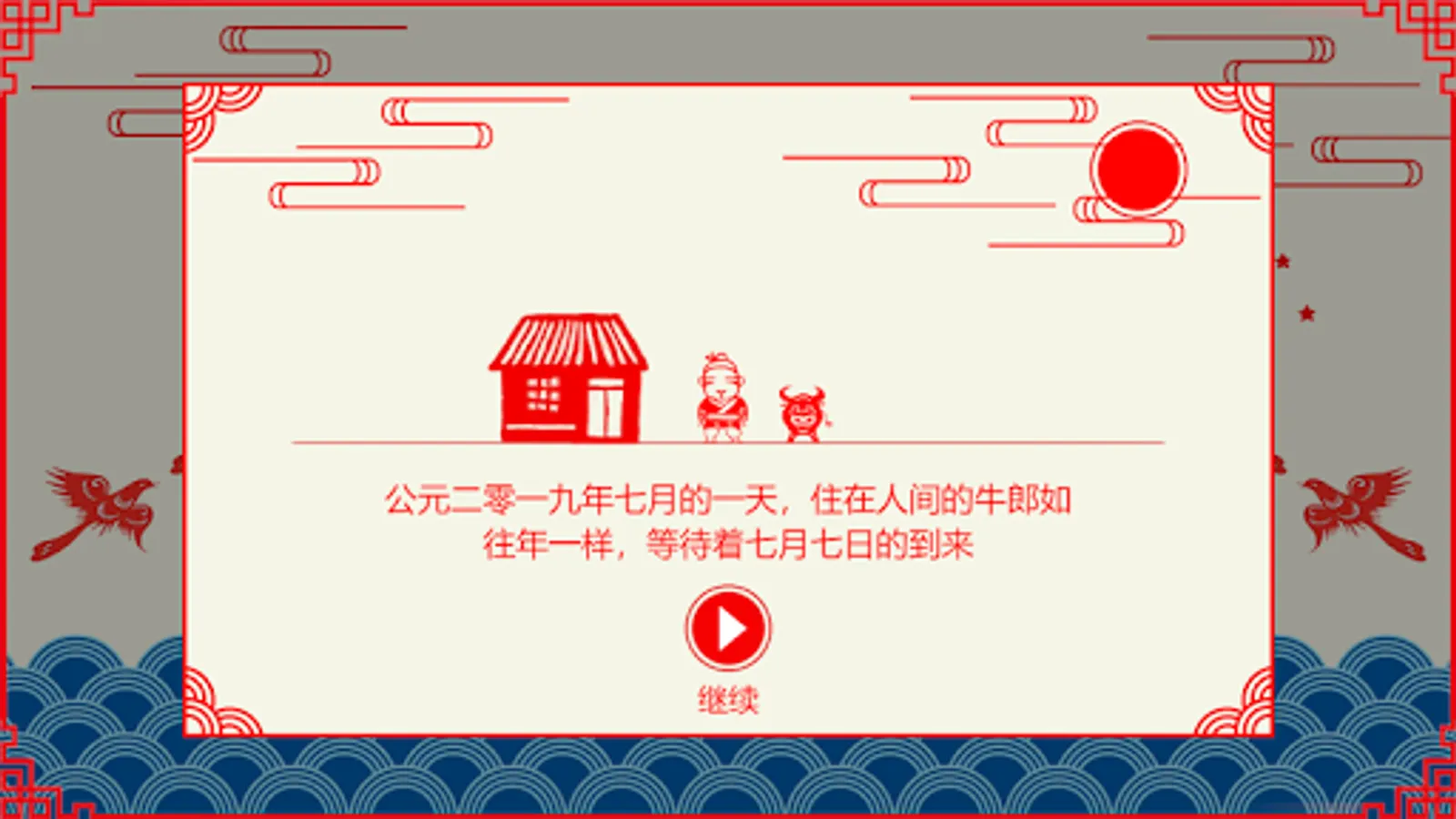 Since the Weaver Girl was brought back to the heavens, the Cowherd and the Weaver Girl can only meet at the Bridge on July 7th. Every year, the blink of an eye has passed for thousands of years. One day in July 2019, the cowherd living in the world waited for the arrival of July 7th as in previous years. The Queen Mother knew that the Cowherd and the Weaver Girl would meet each other on July 7th every year, so they were so angry that they came to the world and read the Fa, and the Cowherd was burning like a flame, and the Cowherd was cursed by the flames. The objects were all turned into ashes, and the magpies that came to meet them could not be avoided. When the Cowherd was unable to do anything, he came to a cow. He brought the technique of ice, and solved the curse of the Cowherd, the ashes. The magpie was also saved. Finally, on July 7th, the Cowherd went to the appointment on time, and on the bridge, he talked with the Weaver Girl.........