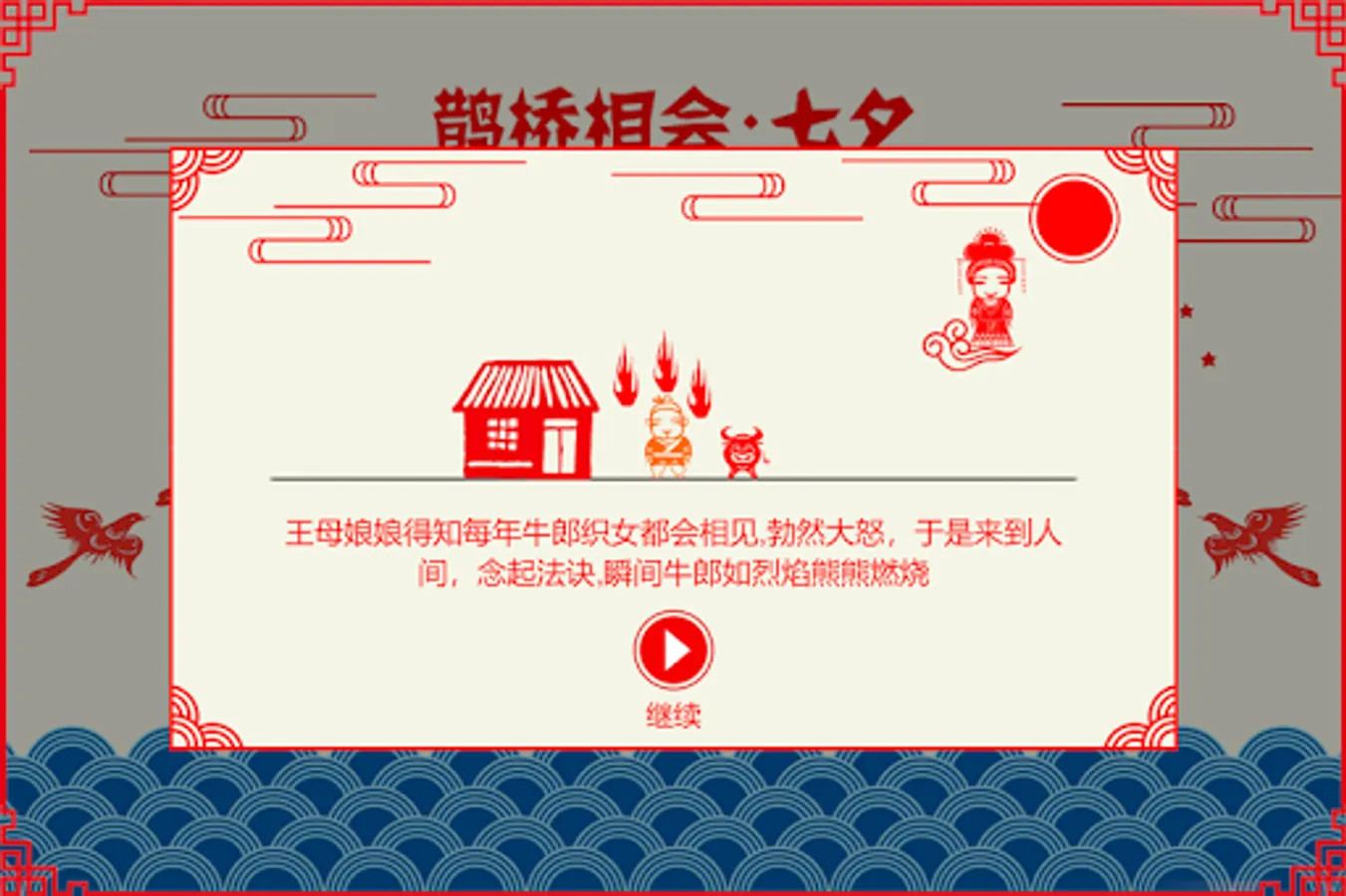 In the game, you play the Cowherd, go to the sacred cow to unravel the flame curse, and then go to meet with the Weaver Girl, and then you must not touch the Weaver Girl and Magpie before unraveling the curse, otherwise they will be ashes.
