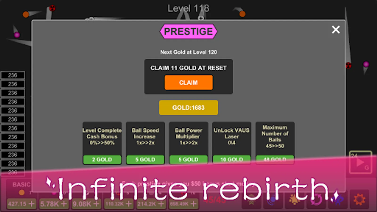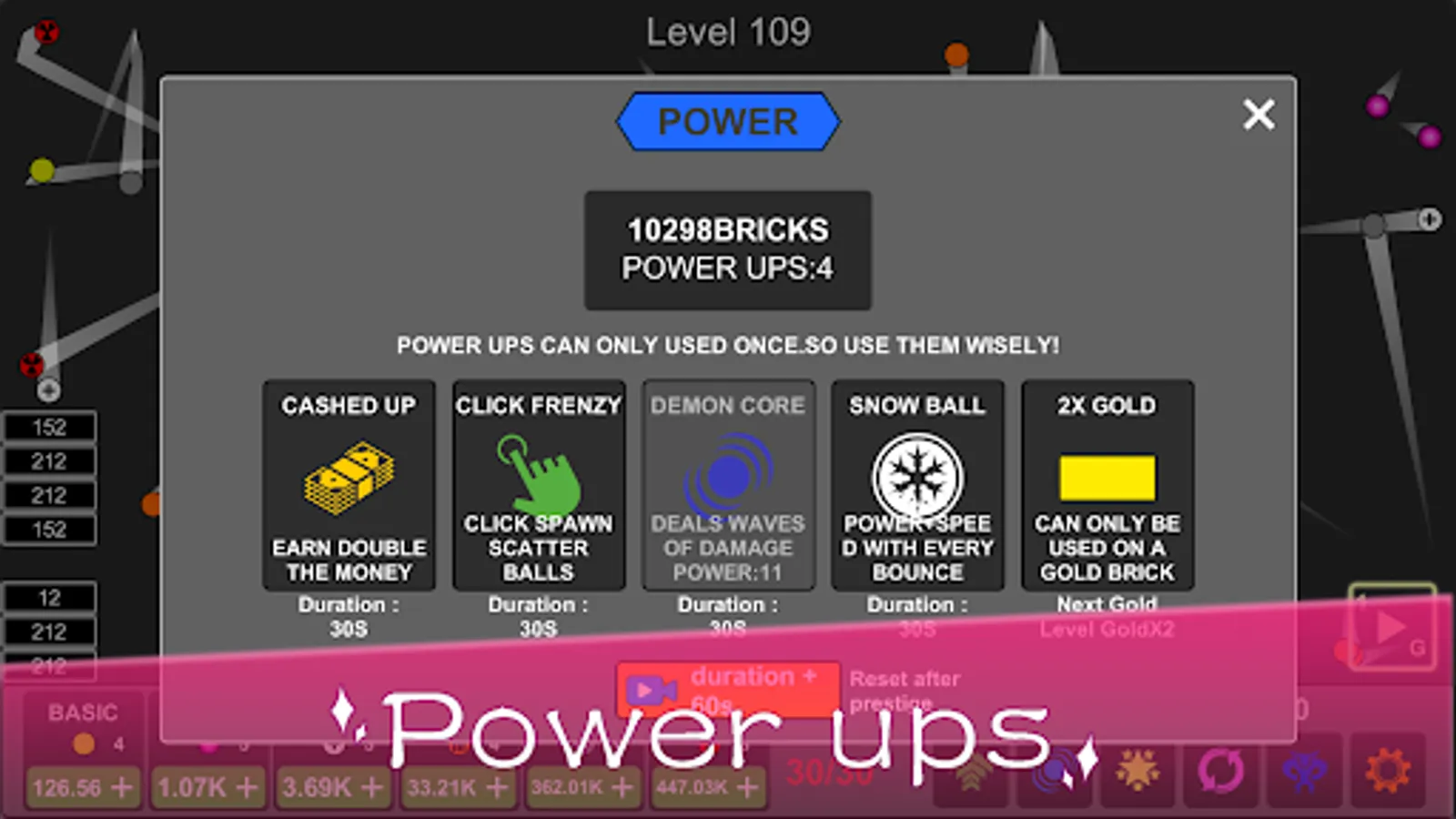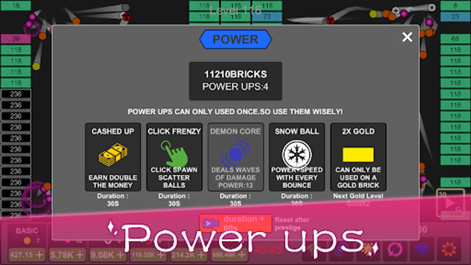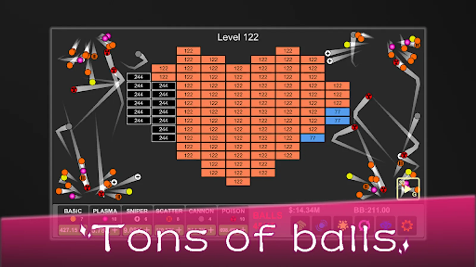 Idle version of classic brick breaking game!