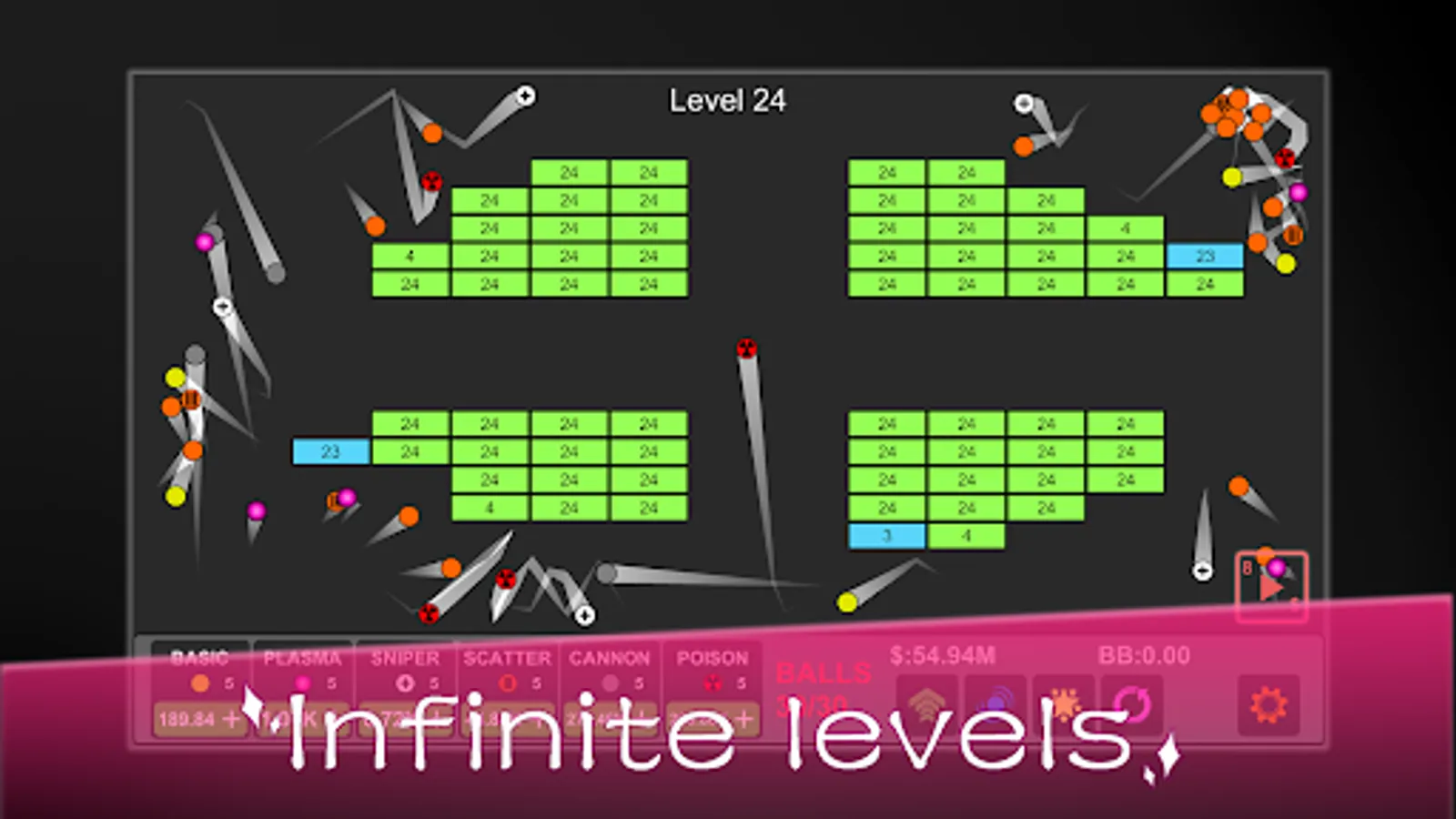 Use different balls with different strength,speed,and unique abilities to crush the bricks and see how many bricks can you smash!