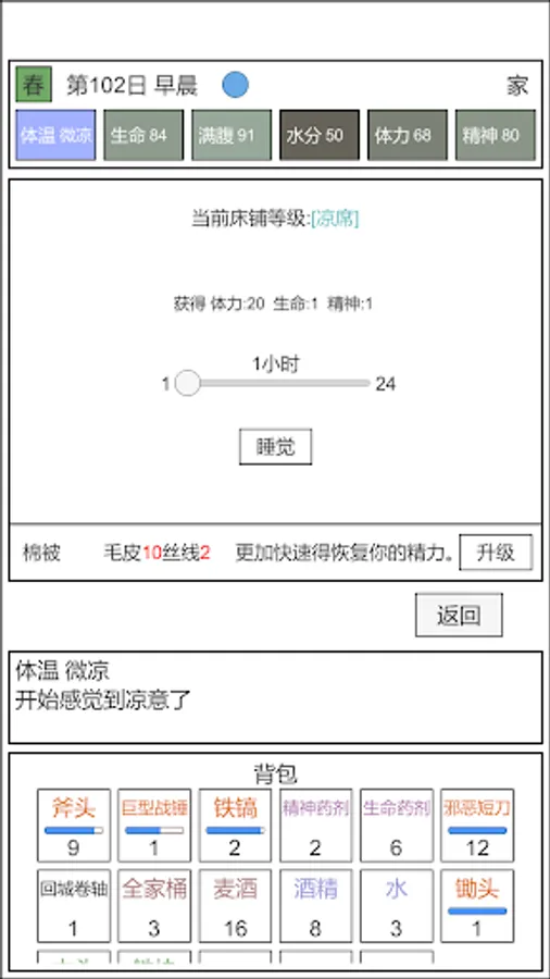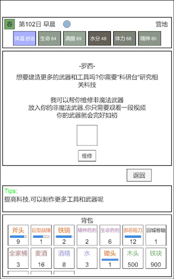 In the game you play an adventurer, you need to cultivate, hunt, cook, maintain basic survival, and have to take risks to improve your combat effectiveness. Finally find the hidden place of the Dark Lord and defeat him.