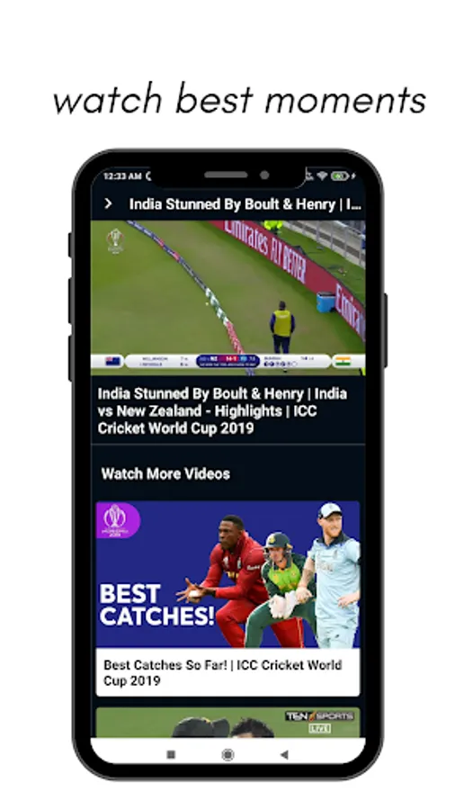 This Cricket Highlights App brings you the latest updates like match scores and matches commentary about the latest cricket match.