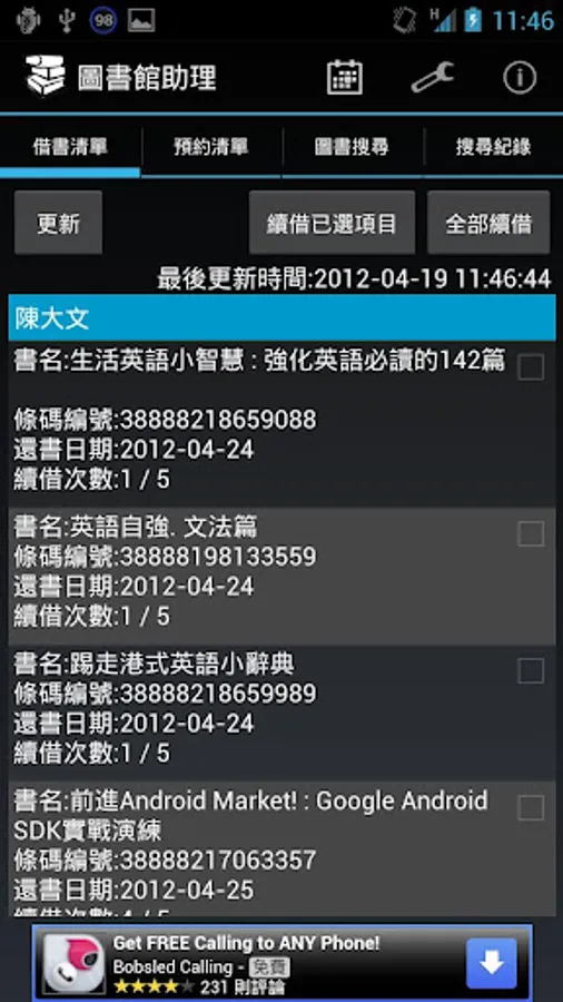 Library Assistant is a simple program to keep track of the borrowed records from Hong Kong public library (HKPL) with following features:
