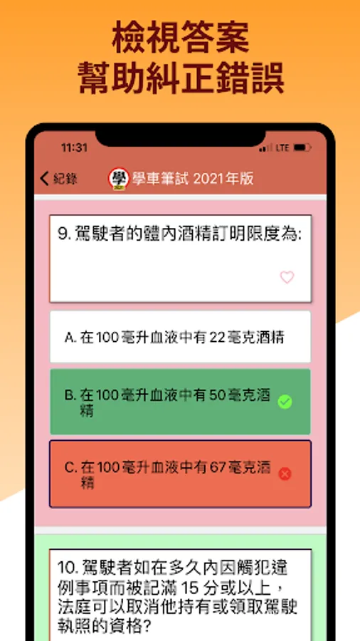 This app contains more than 800 questions. It simulates the "Part A Computer Written Test" of the Transport Department. Each time is limited to 20 minutes, and 20 multiple-choice questions are randomly selected. The results are displayed immediately after completion. Users can also browse through the test questions, and the program will display the correct answers to each question and the user's choice at one time, making it easier for users to grasp the differences between the questions and distinguish the key points.