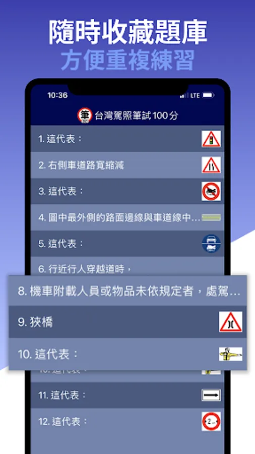 The "Taiwan Driver's License Written Test 100 Points" application provides 100% sample test questions based on the written test question bank resources of the "General Administration of Highways, Ministry of Communications of the Republic of China". Users will not miss any test questions, so that you are fully prepared for the written test.