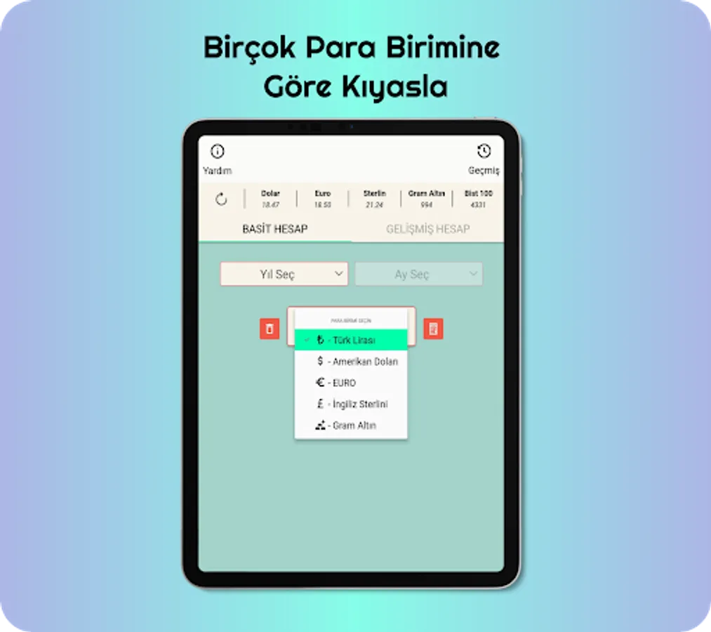 -You can simply make your current investments and financial analysis according to Turkish Lira, Dollar, Gold and many other financial instruments.