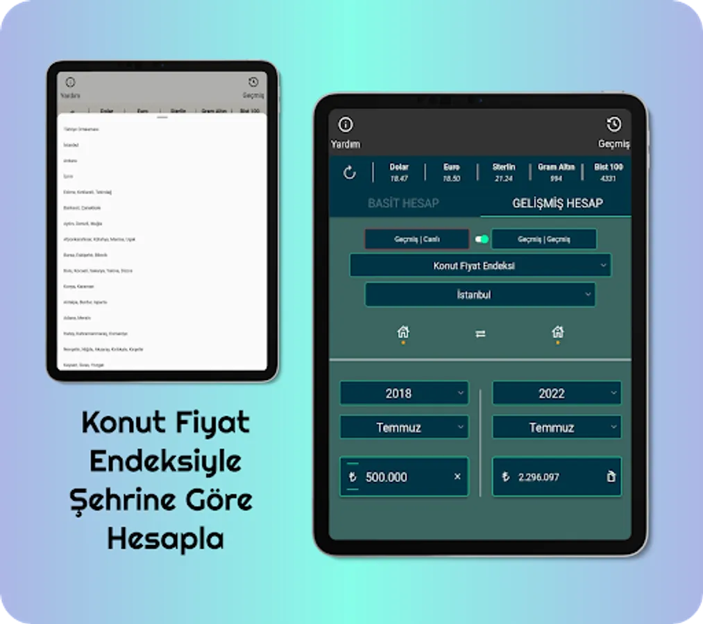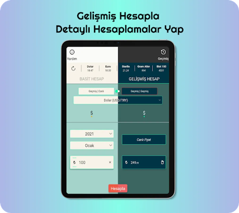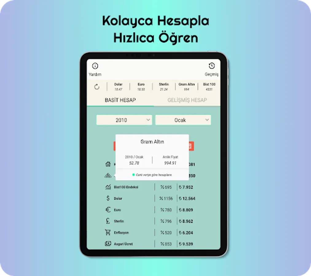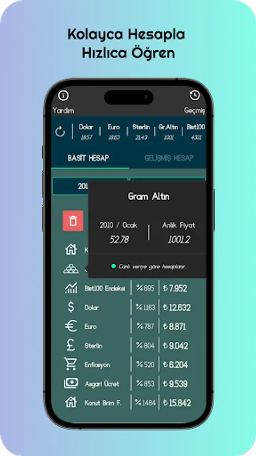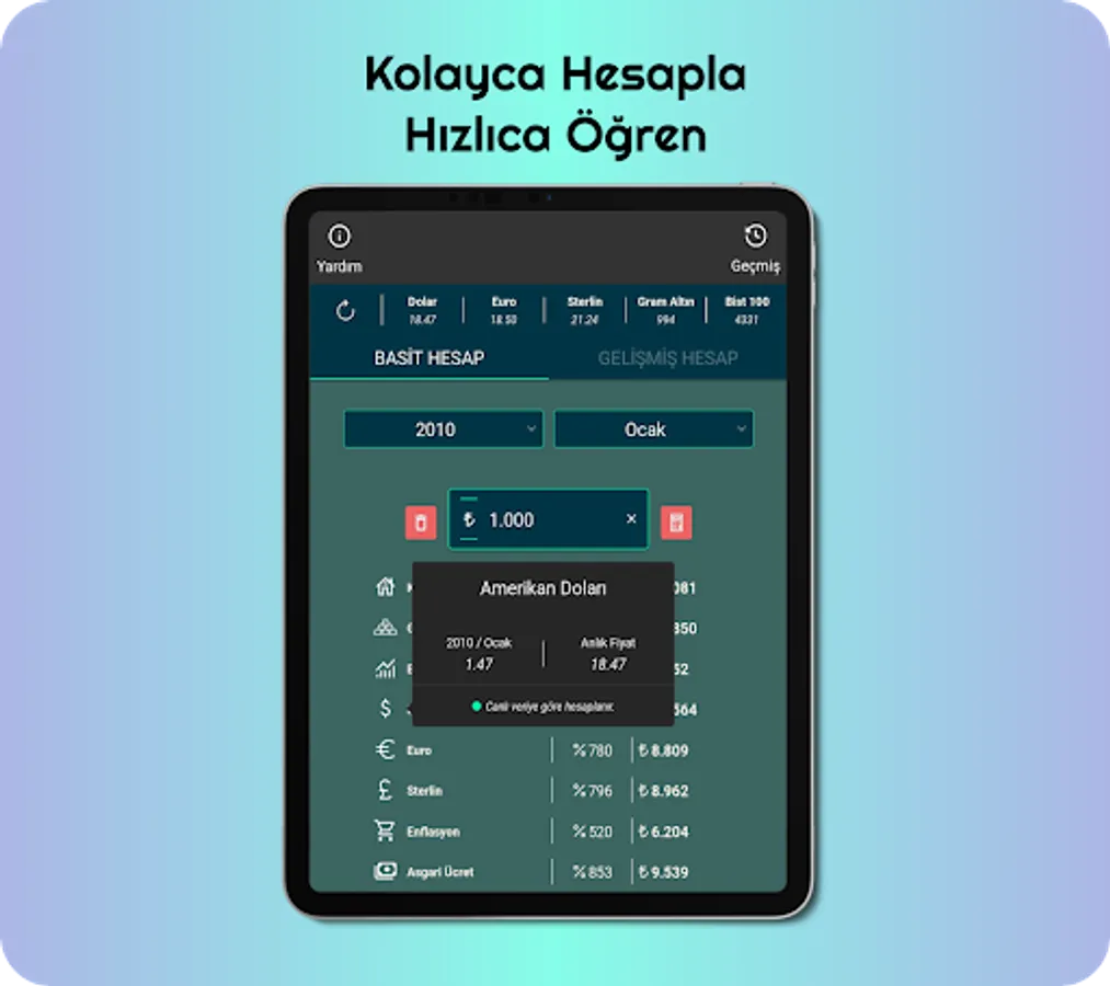 - Understanding Finance, Stock Exchange, Investment (Investing), Gold, Dollar, Euro, Housing Prices and calculating their current values and analyzes are now very easy with this calculator.