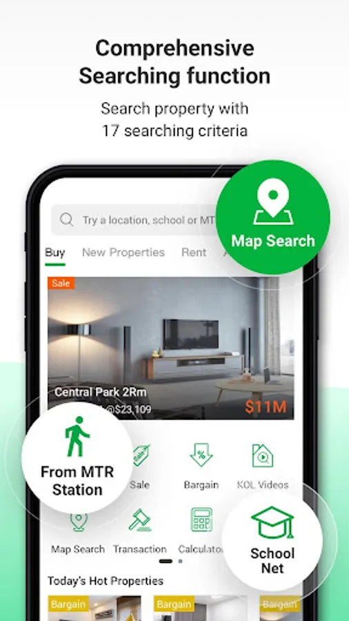 - You can search property based on 17 criteria, including search by MTR station, developer and school nets
