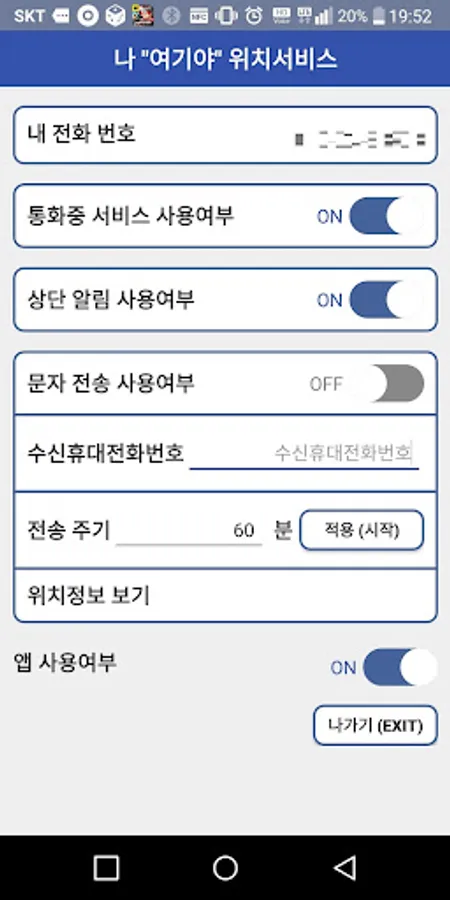 2) whether letters sent On / Off: Set the minute you want to transfer location information to the mobile phone number registered in accordance with the period setting unit