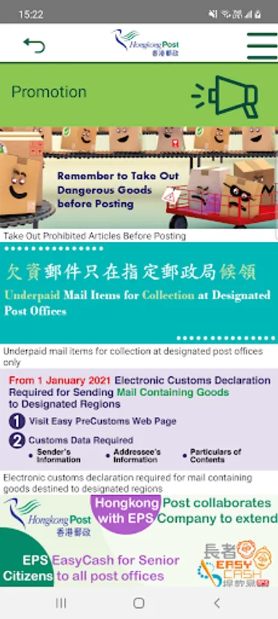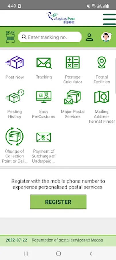 The new version of Hongkong Post Mobile App adopts an easy-to-use interface with upgraded popular functions, bringing enhanced experience to our customers.