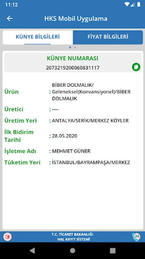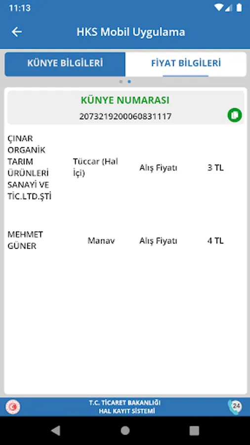 T. C Trade Ministry of Domestic Trade General Directorate of State Registration System Inquiry Imprint Mobile App.