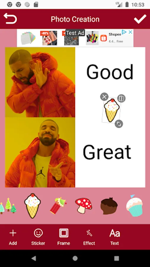 - Custom memes – you can use any picture from your gallery!