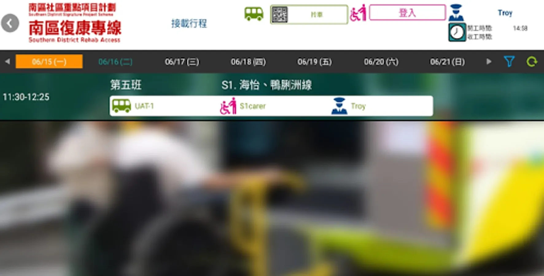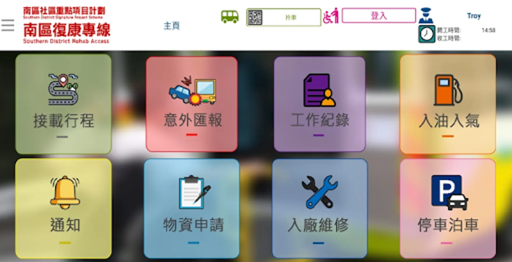 Southern District Rehab Access is one of the Accessible Travel and Transport service under The Hong Kong Society for Rehabilitation. Our Drivers and Attendants only open and log in to this application, they can record daily operation information and input real time feedback. We can collect their service and operation data to facilitate the service arrangement and provide support.