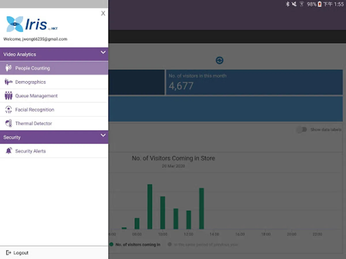 The HKT Video Analytics App is a centralized, intelligent tool that obtains stable and accurate real-time system feedback from all connected cameras. The App then uses innovative video-analytics to turn the information from the videos into valuable business insights. The App provides easy access to the data from anywhere, at any time.