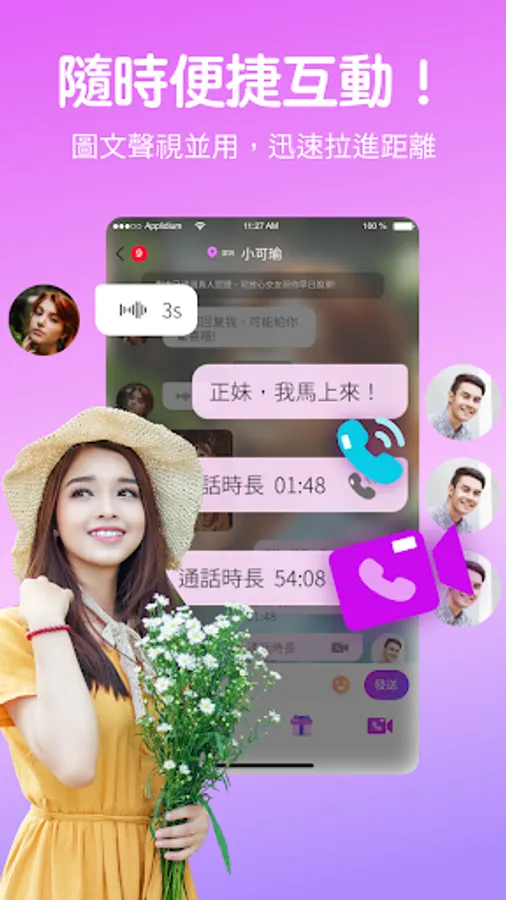 Kimo supports a variety of communication methods such as text, voice, phone, video, etc. Whether at home, on the road or at work, you can chat with the person you are interested in anytime, anywhere, and show your social charm!