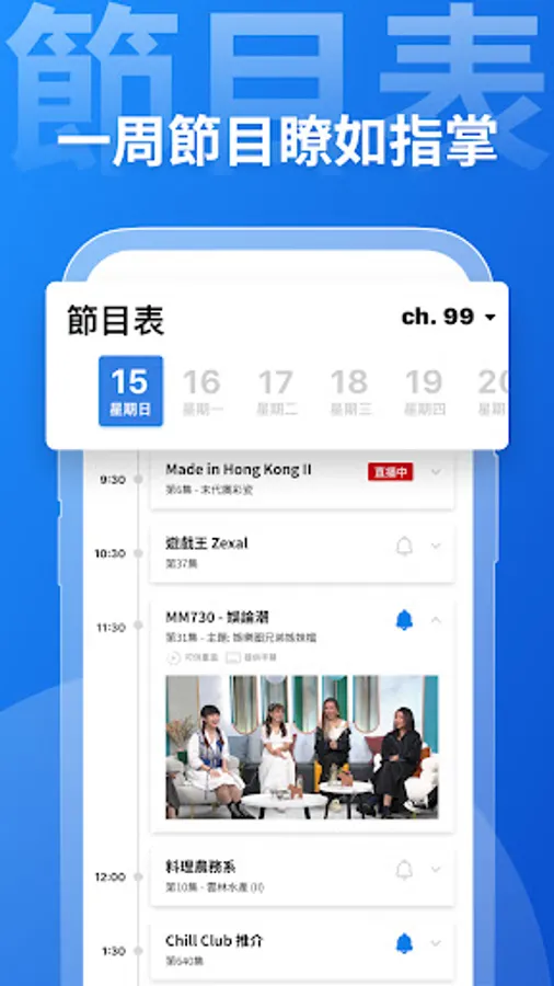 .Live Simulcast: Watch live broadcast of ch.99 simultaneously.