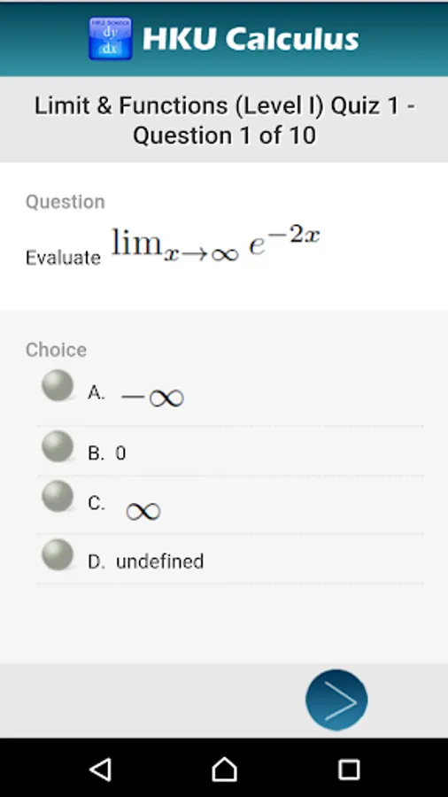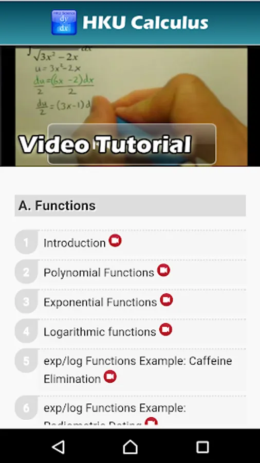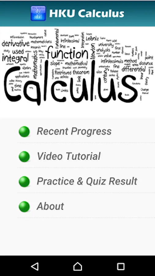 This app is a friendly introduction to Calculus. It is suitable for senior secondary students with little or no prior knowledge to Calculus. In this app, you will be introduced to functions, limits, differentiation, integration and differential equations. Each chapter contains videos and practice quizzes. The videos explain concepts and applications, while the quizzes help you to learn by practising. After going through the app, you will be able to apply some Calculus techniques and to construct simple models involving rates of change.