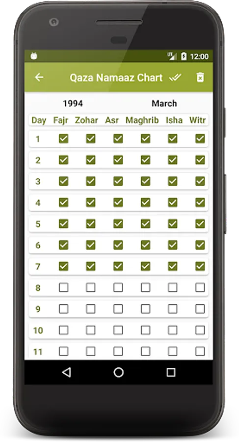 There is a quick mark option available on the home screen to quickly mark any Qaza prayer whenever completed.