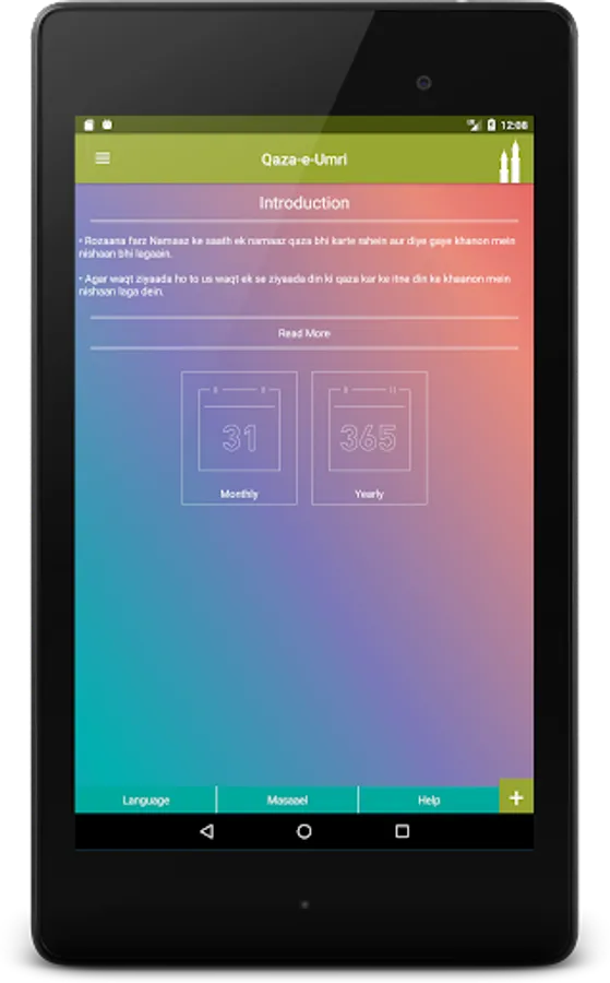 Idaara-e-Deeniyat is pleased to announce Qaza-e-Umri application for Android devices. The application provides easy management and guidance to manage all Qaza prayers of a person. The app keeps records of all the Qaza prayers which are completed, in progress and incomplete.