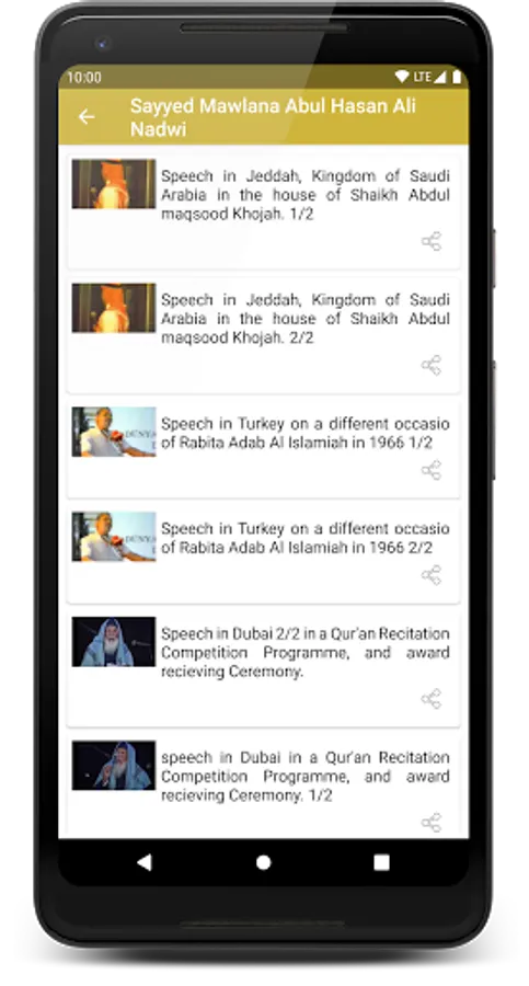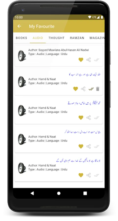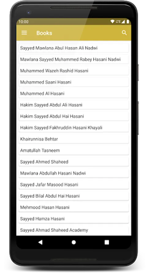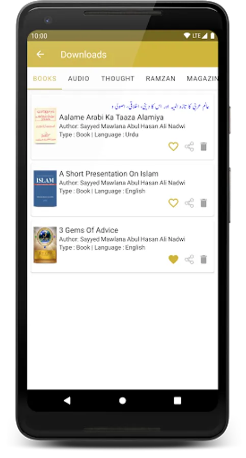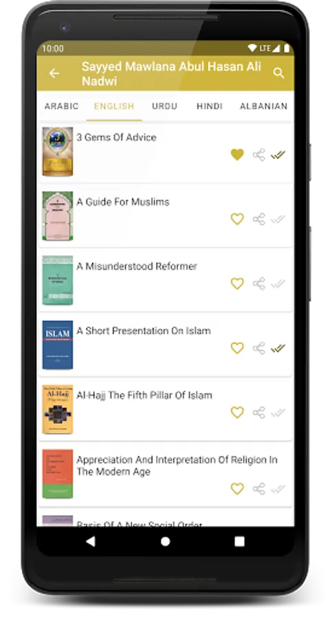 The mobile app provides access to various collections of Hadhrat Mawlana Abul Hasan Ali Nadwi and many other authors as follows: