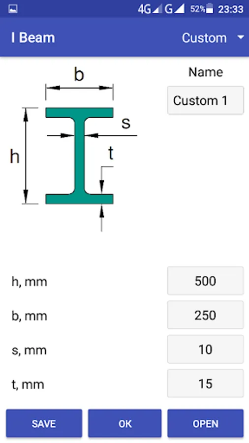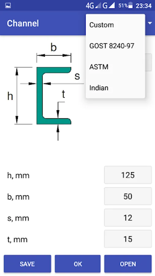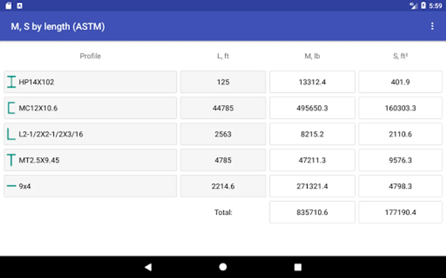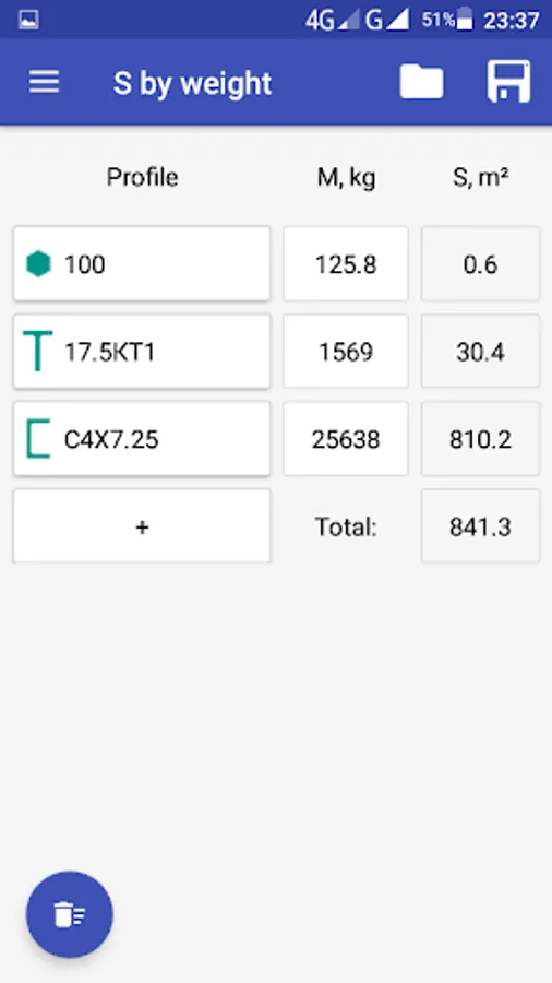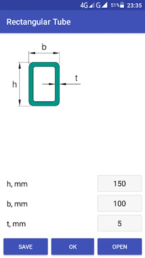 Metal calculator calculates the mass and the surface area of the steel rolled metal.