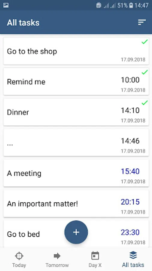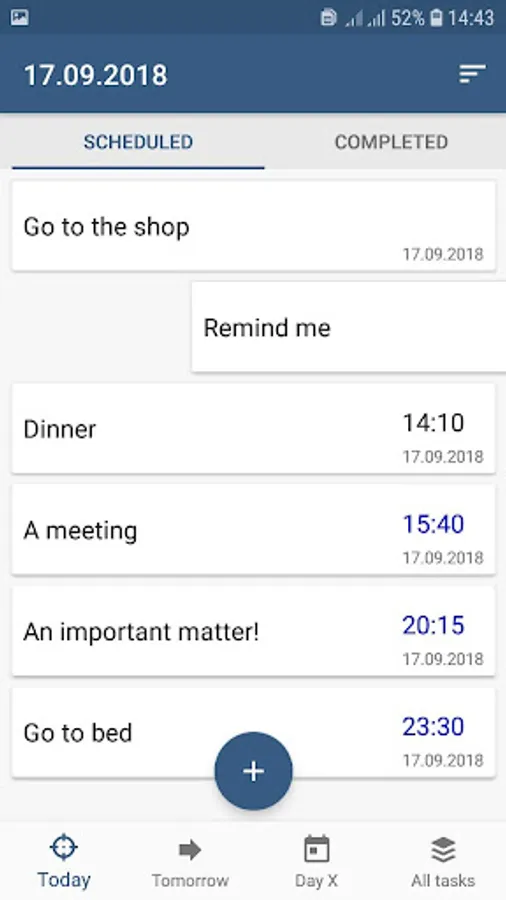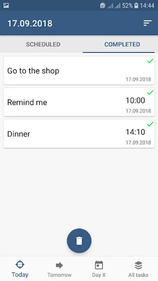 - Separate tabs for tasks for today, tomorrow, for choice and for all business