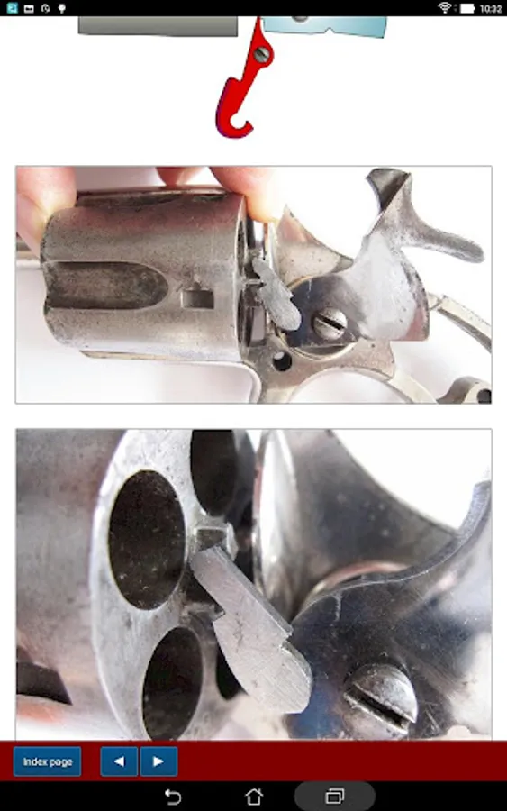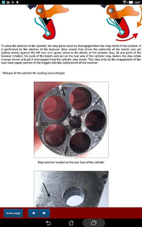 - Hand's upper portion preventing counterclockwise return of the cylinder