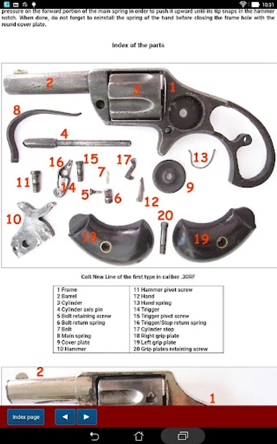 - Colt New Line of the second type in caliber .38RF (index of parts)