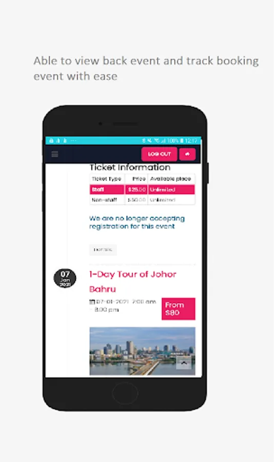 - View your past and current event/activity bookings."