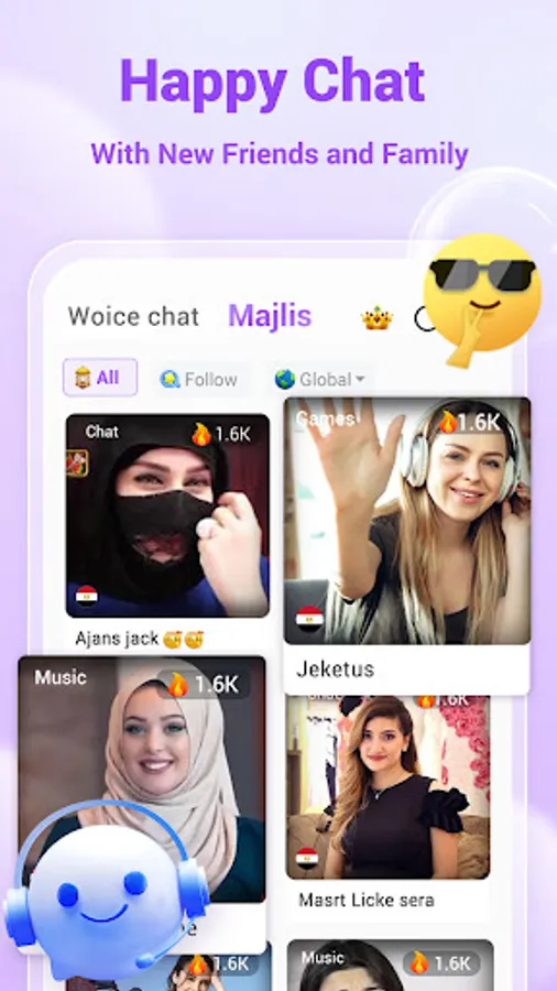 Majlis Star is a chatting room App for Middle East region, playing games, making friends, and earning money - you can also play free games online during chatting, and earn diamond and money working from home. Play games with friends, live chat with Middle East people - All in Majlis Star