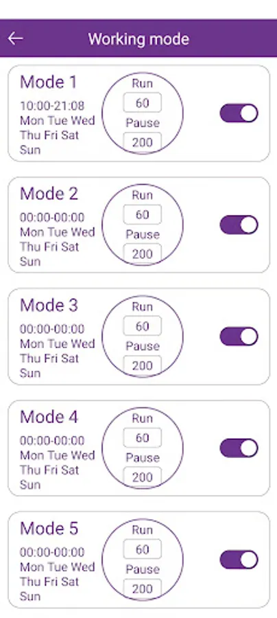 Built-in five groups of time period mode, each mode can be freely set working week combination, time period, startup time and shutdown time, etc., suitable for multiple scenarios.