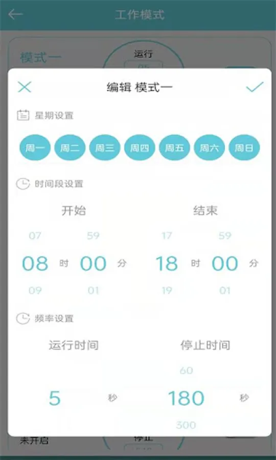 工作模式自由调节,内置五组时间段模式,每个模式可自由设定工作日星期组合,时间段,开机运行时间及关机停止时间等,适应多场景使用。