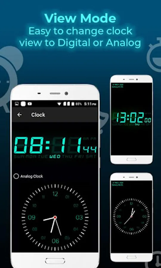 1. Multiple beautiful widgets to display time and alarm clock beside your android device.