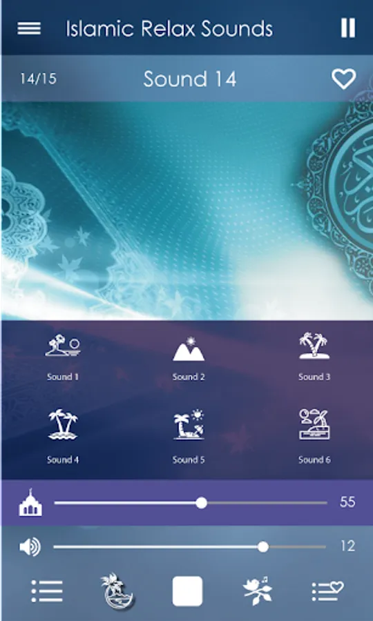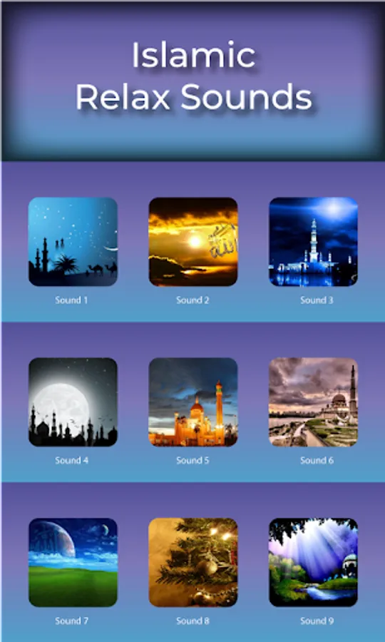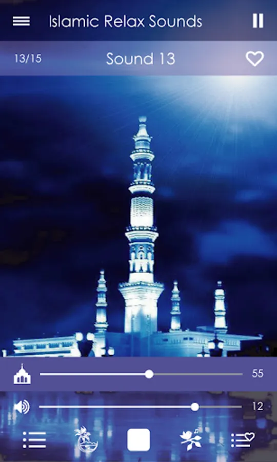 In Islamic relax sleep sound you can enjoy huge collection of nature Islamic sounds, sleep melodies, relax ocean sounds, relax bird sounds. You can mix different combination of Islamic relax sounds + relax ocean sounds and relax birds sounds melodies to create unique combination which help while falling asleep.