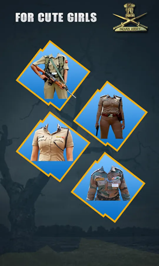 Manage your photograph with Indian army uniform editor and consider yourself comparable a skillful military army man. This is the aspiration of all Indian that he or she grew to come to be an Indian army soldier for this Indian attempt numerous rehearses and do hard work to get a position in Indian military. We made indian army photo suit editor application for those who have enthusiasm in Indian army dress photo suit and wish to become a good Indian army brave man or even indian police or soldiers.