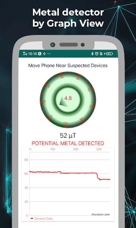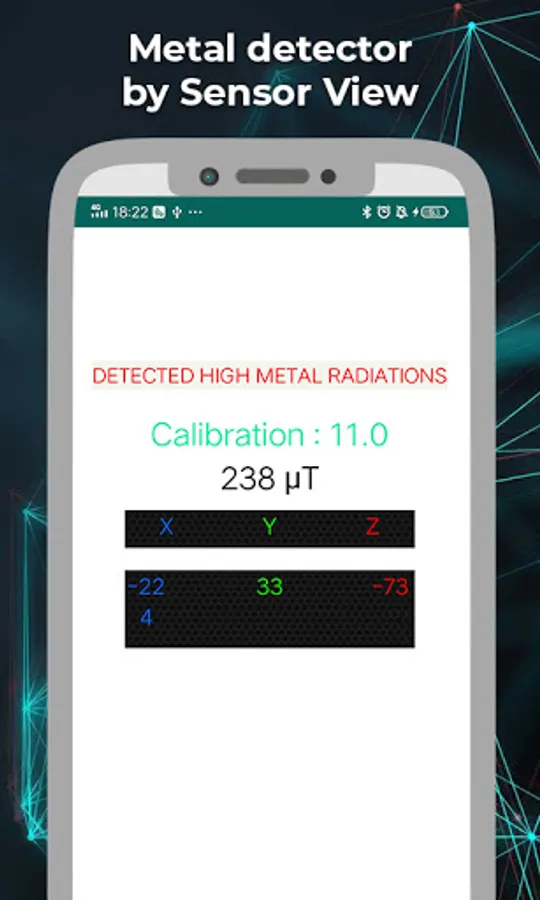 Metal detector: Metal Finder with sound allows to detect the presence of metal objects in area by measuring the magnetic field value, because all metals generate magnetic field which strength can be measured with this tool. This metal finder app uses the built-in magnetic sensor of your mobile and show magnetic field level in μT [microtesla]. The accuracy depends entirely on your device magnetic sensor (magnetometer).