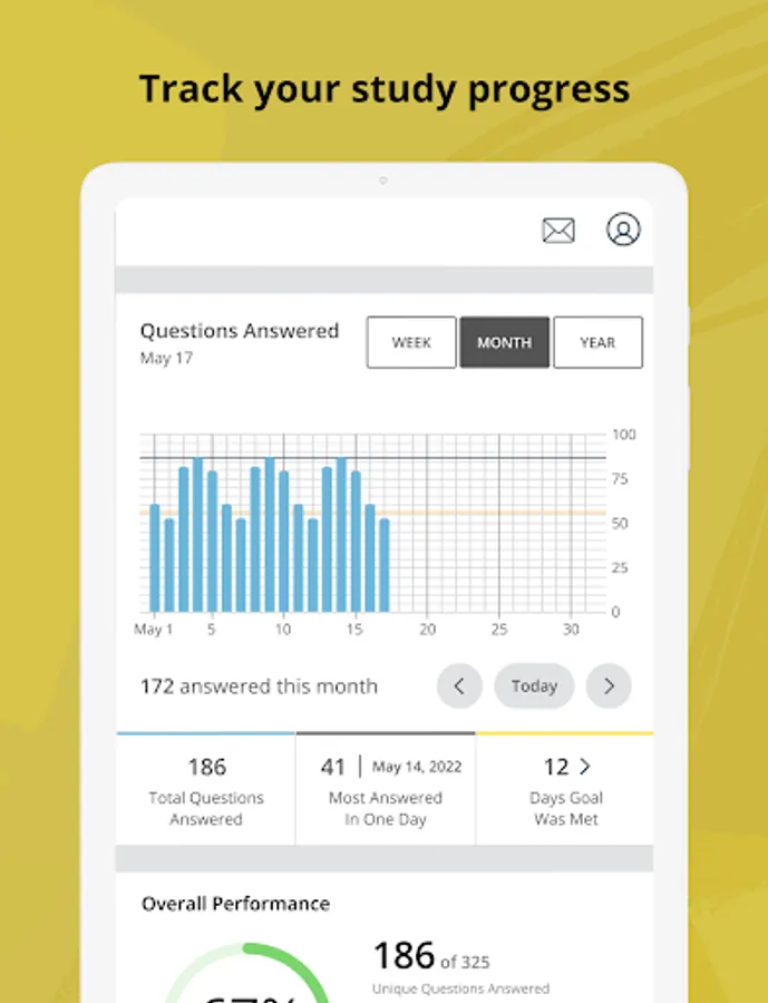 - Advanced progress tracking tool that indicates how you are performing on each question.