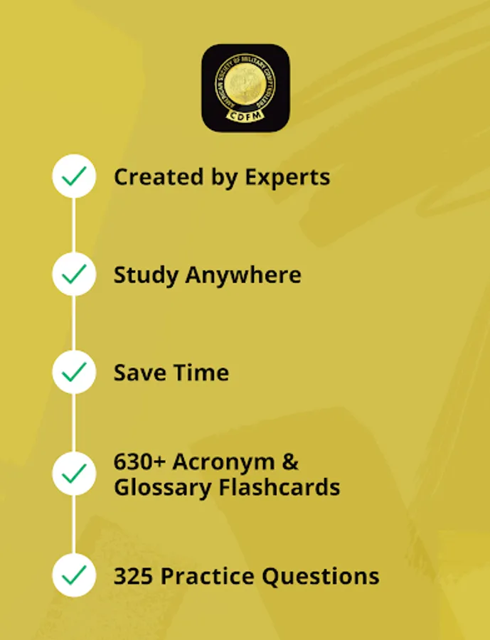 Study for your Certified Defense Financial Manager (CDFM) credential the easy way with the official American Society of Military Comptrollers (ASMC) CDFM Practice Test app! The CDFM Practice Test is a mobile app (also accessible by web) for individuals preparing to take the CDFM exams. This tool is designed to help you build your confidence and identify areas in which additional exam preparation may be needed.
