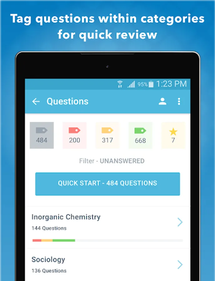 Install the free version today and jump start your studying! We have provided a limited free version of the app that you can try before deciding to upgrade. This version includes a limited amount of practice questions and basic progress metrics.
