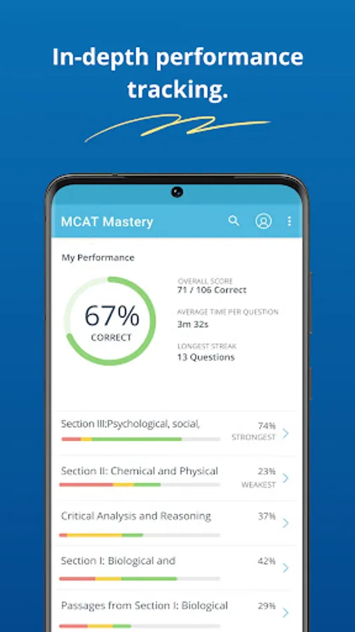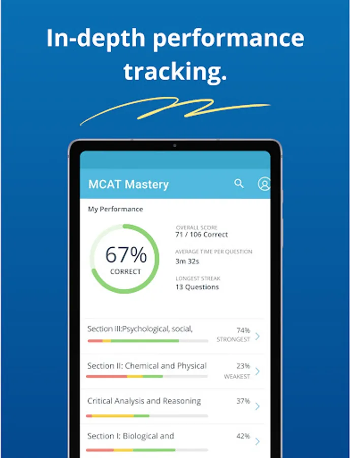 MCAT prep Mastery is a high-quality Medical School study guide that will help you pass the Medical School admission test! With many features like MCAT flashcards, quizzes, and the question of the day, you will be ready for the real Medical School Test.