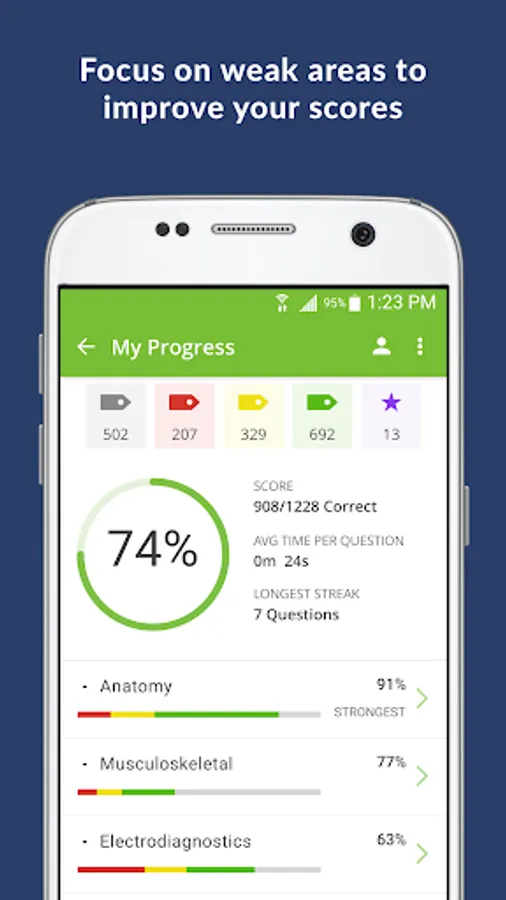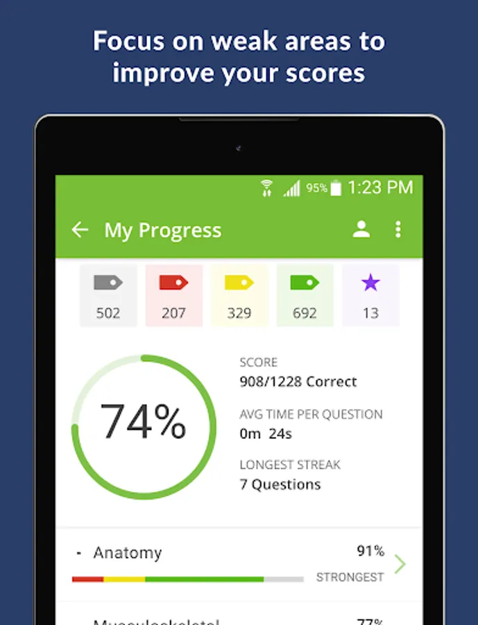 • Detailed results tracking showing your strongest and weakest areas