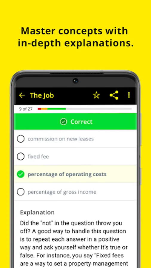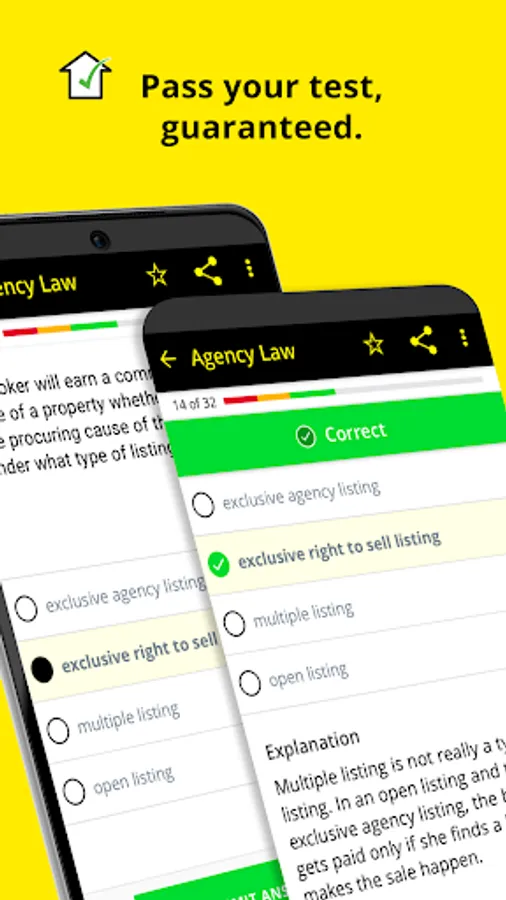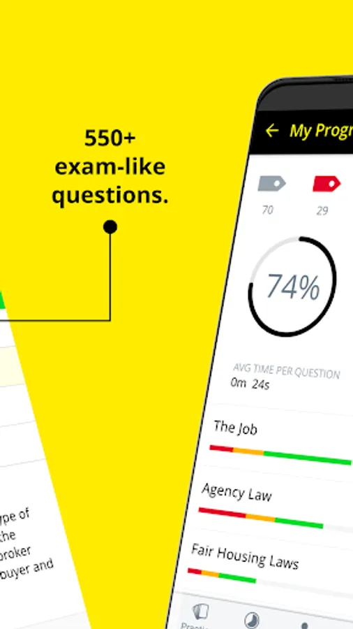 Our Real Estate exam prep has everything you need to pass final test and join the professional Real Estate Agent ranks. Featuring flashcards, 500+ Real Estate practice questions, quizzes, mnemonics, and strategies, our app will help you get the score you need!