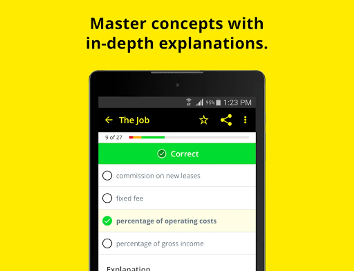 Practice with 550+ real estate practice questions and explanations, get 150+ test topics and use a unique tagging system to learn faster and smarter. Our Real Estate exam prep will help you pass on the 1st try. 100%guaranteed!