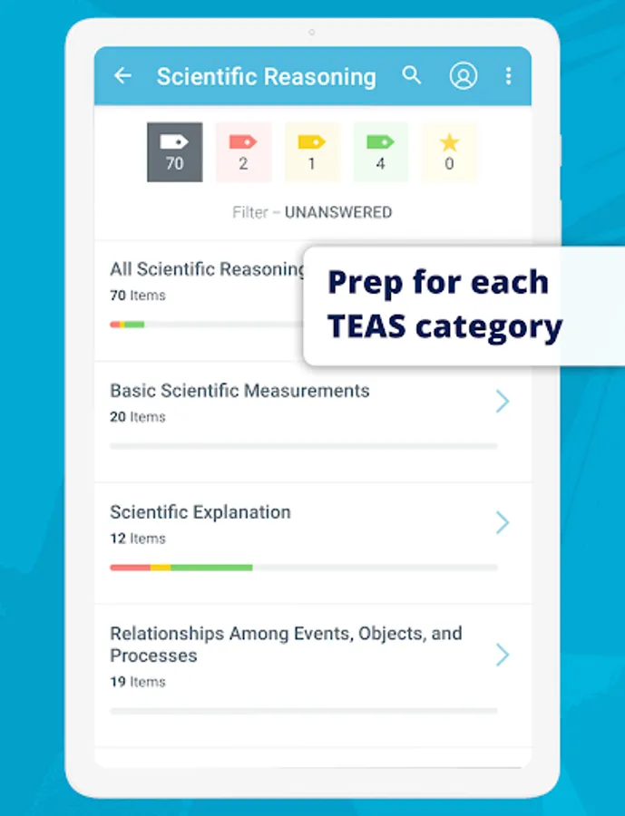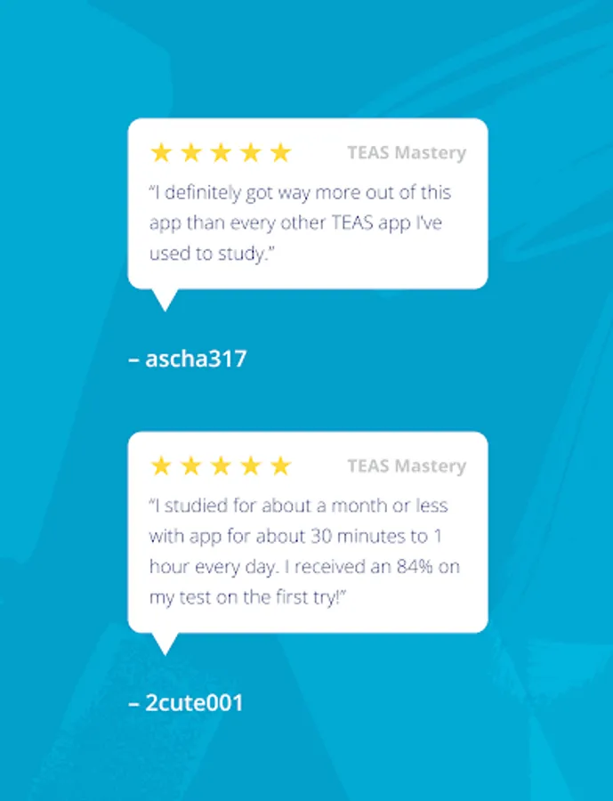 “I just started studying for my TEAS exam several days ago. My exam was today. This app prepared me better than the actual TEAS test prep book from ATI themselves. The questions here and the explanations certainly helped me to score high! TEAS 7 test questions are leagues easier than what this app gives you, but that makes the prep and studying better.” -Anonymous User