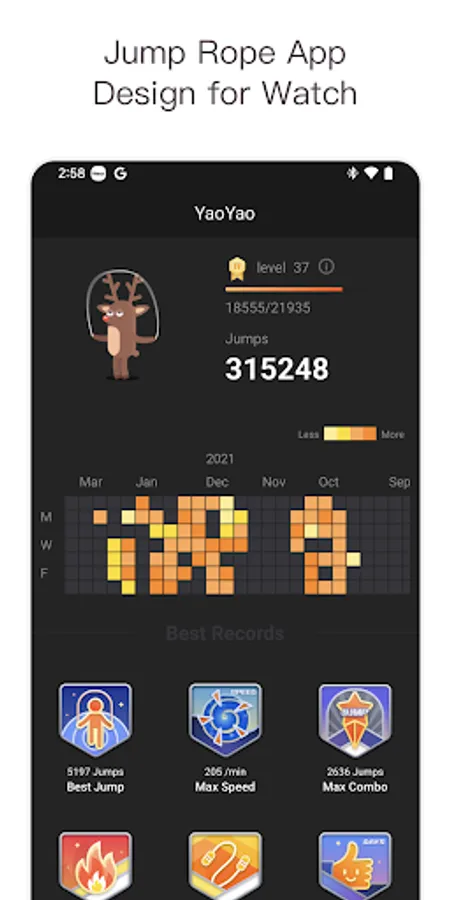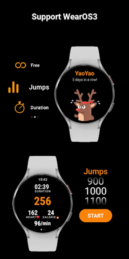 YaoYao utilizes the Watch motion sensor to count your Jumps. YaoYao costs you no more than an ordinary Jump rope.