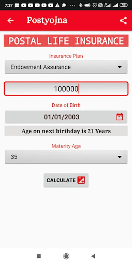 2. Postal Life Insurance PLI Premium Calculator: