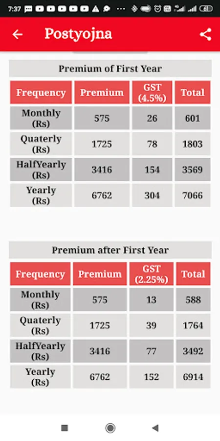 Postal Life Insurance premium calculator provides premium calculation on Monthly, Quarterly, HalfYearly, and Yearly. This is only an application that provides this premium on a different frequency.