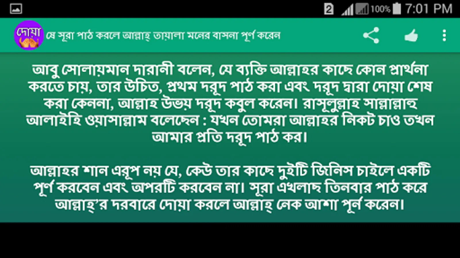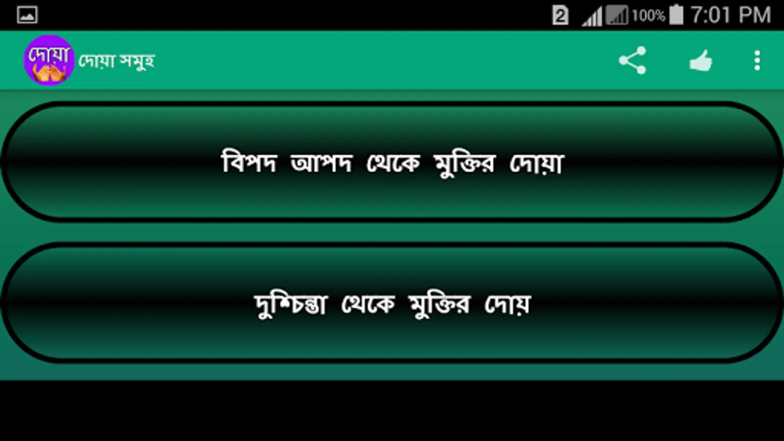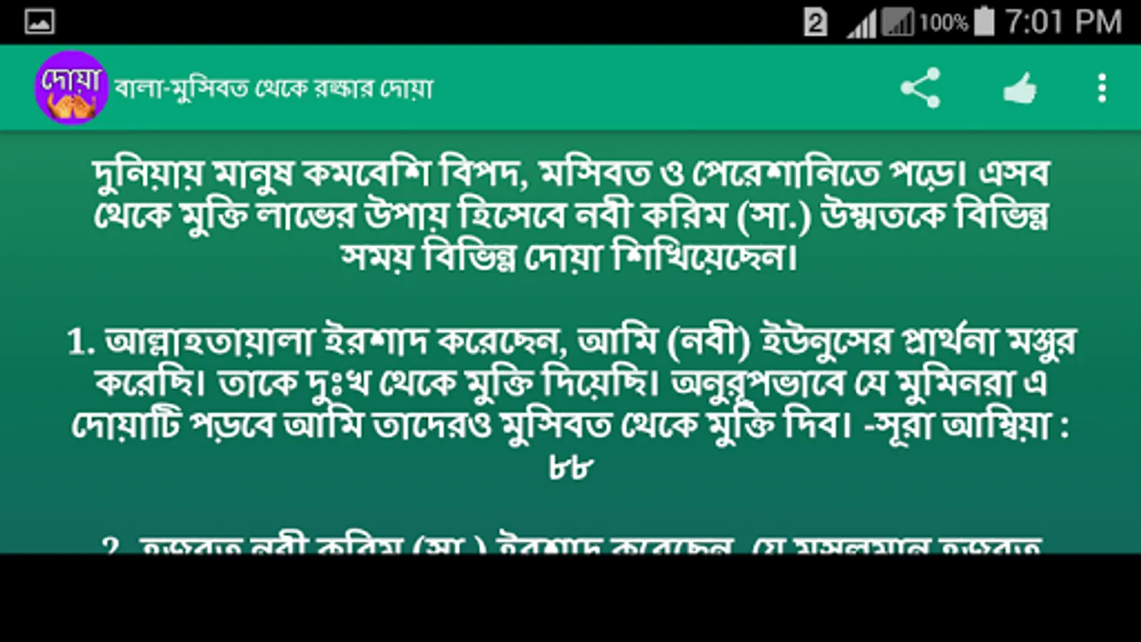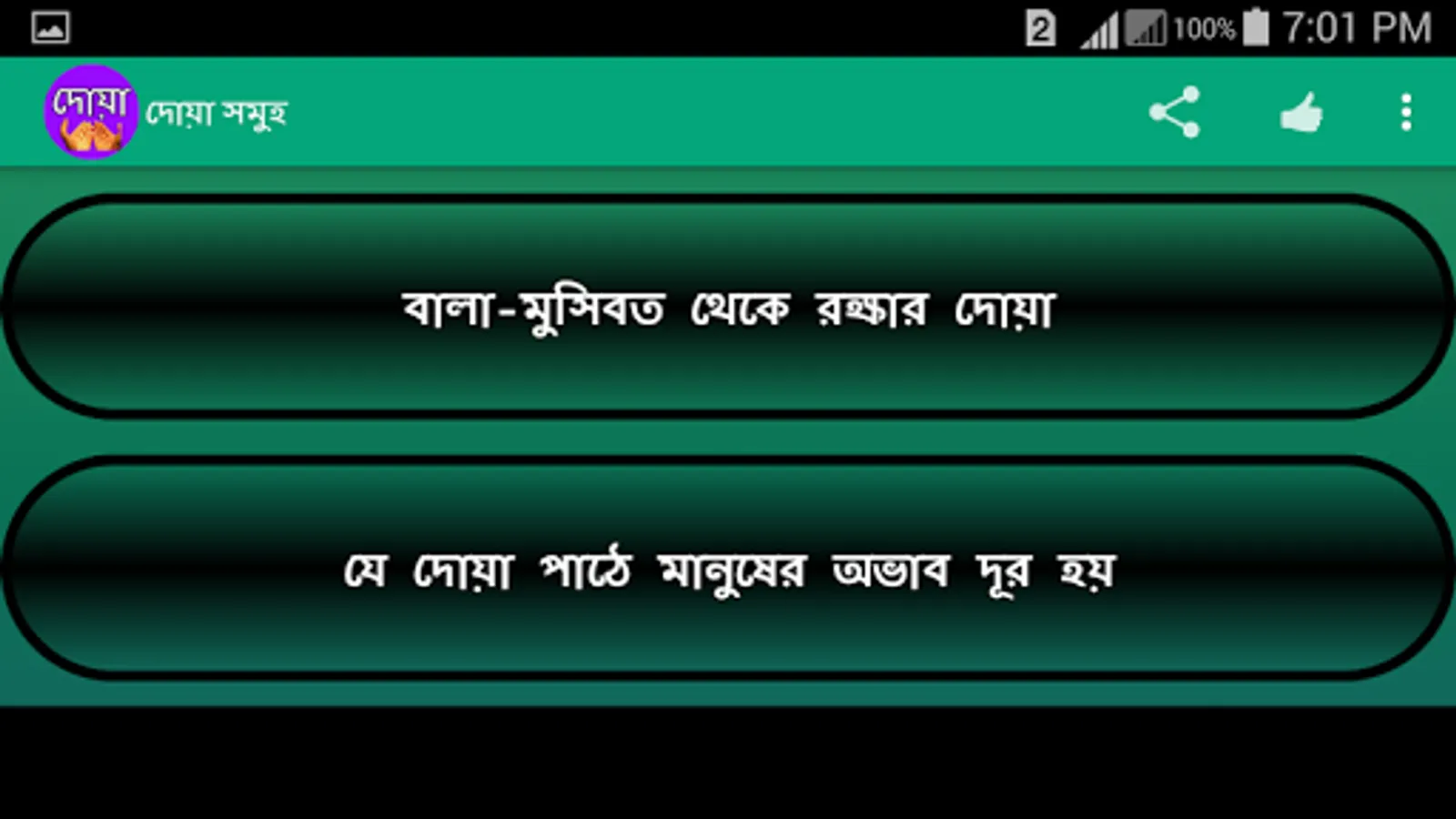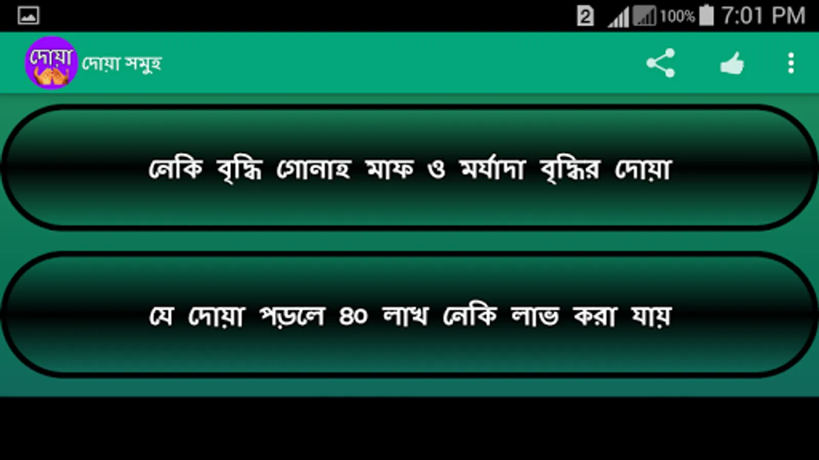 দোয়া চাওয়া বা দোয়া করা মুসলিম সম্প্রদায় এর জন্য খুব জরুরি একটা বিষয় প্রত্যেক মুসলমান কে আল্লাহর কাছে একান্তত কিছু চাইতে হলে দোয়া করতে হয় তবে এই দোয়া চাওয়ার কিছু নিয়ম আছে প্রত্যেক টি চাওয়ার জন্য থাকে আলাধা দোয়া আলাধা আমল কারণ এক এক দোয়ার এক এক ফজিলত, আমরা অনেকে জানি না কোন সময় কোন দোয়া পগতে হয় কোন দোয়া পড়লে কি ফজিলত অথবা কোন দোয়া পড়লে কি হয় তাও জানি তাই আমরা হয় তো দোয়া করেও আমাদের চাওয়া টা পাই না আবার এরুপ ও হাদিসে বর্ননা আছে যে আমরা আল্লালাহর কাছে যা চাই তা আল্লাহ ঠিকি দেন কিন্তু আমরা তা বুঝতে পারি না বর্ননাকে এমন বলা হয়েছে যে আমরা যা চাই আল্লাহ তার পরিবর্তে আমাদের সেই সমান কোন বিপদ থেকে মুক্তি দেন বা যা চাই তা আখেরাতে জন্য বরাদ্দ করেন যাই হোক আল্লাহ তা'আলা সুমহান তিনি পরণ দয়ালু আল্লহর দরবারে খাজ দিলে কোন কিছু চাইলে আল্লহ নারাজ করেন না, আর কাই আমরা আপনার জানার সুবিদার্থে তৈরি করেছি এই দোয়ার বই অ্যাপ টি